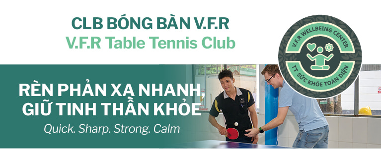 CLB Bóng Bàn V.F.R là hoạt động thể thao nằm trong hệ thống chăm sóc sức khỏe của Trung Tâm Sức Khỏe Toàn Diện, tạo cơ hội cho nhân viên rèn luyện phản xạ, nâng cao sự tập trung và cải thiện thể lực.