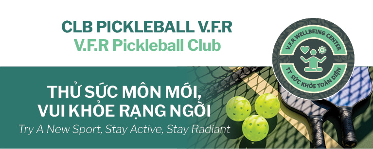 CLB Pickleball V.F.R là hoạt động thể thao mới thuộc Trung Tâm Sức Khỏe Toàn Diện,mang đến trải nghiệm năng động và hiện đại cho cộng đồng V.F.R.