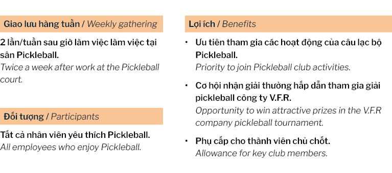 CLB Pickleball V.F.R là hoạt động thể thao mới thuộc Trung Tâm Sức Khỏe Toàn Diện,mang đến trải nghiệm năng động và hiện đại cho cộng đồng V.F.R.