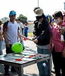 Traditional folk games: piggy bank smashing, ring toss, balloon popping, darts, badminton,