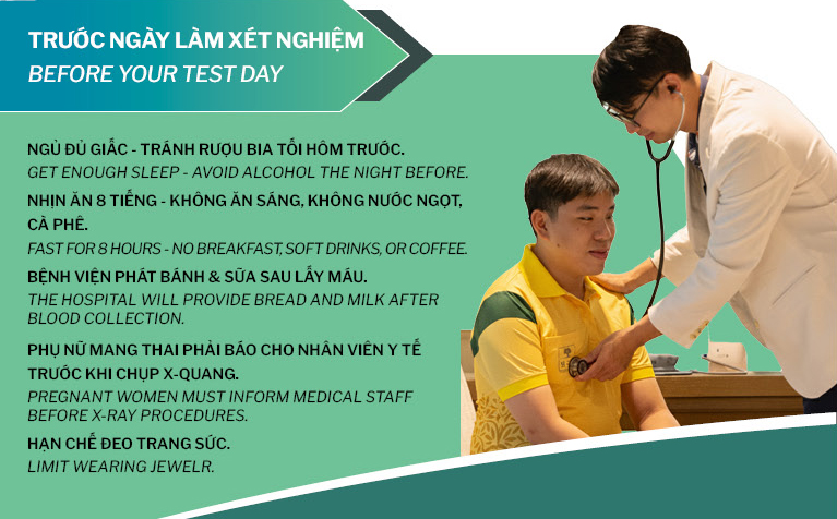 • Làm xét nghiệm máu, điện tim, X-quang, siêu âm.
