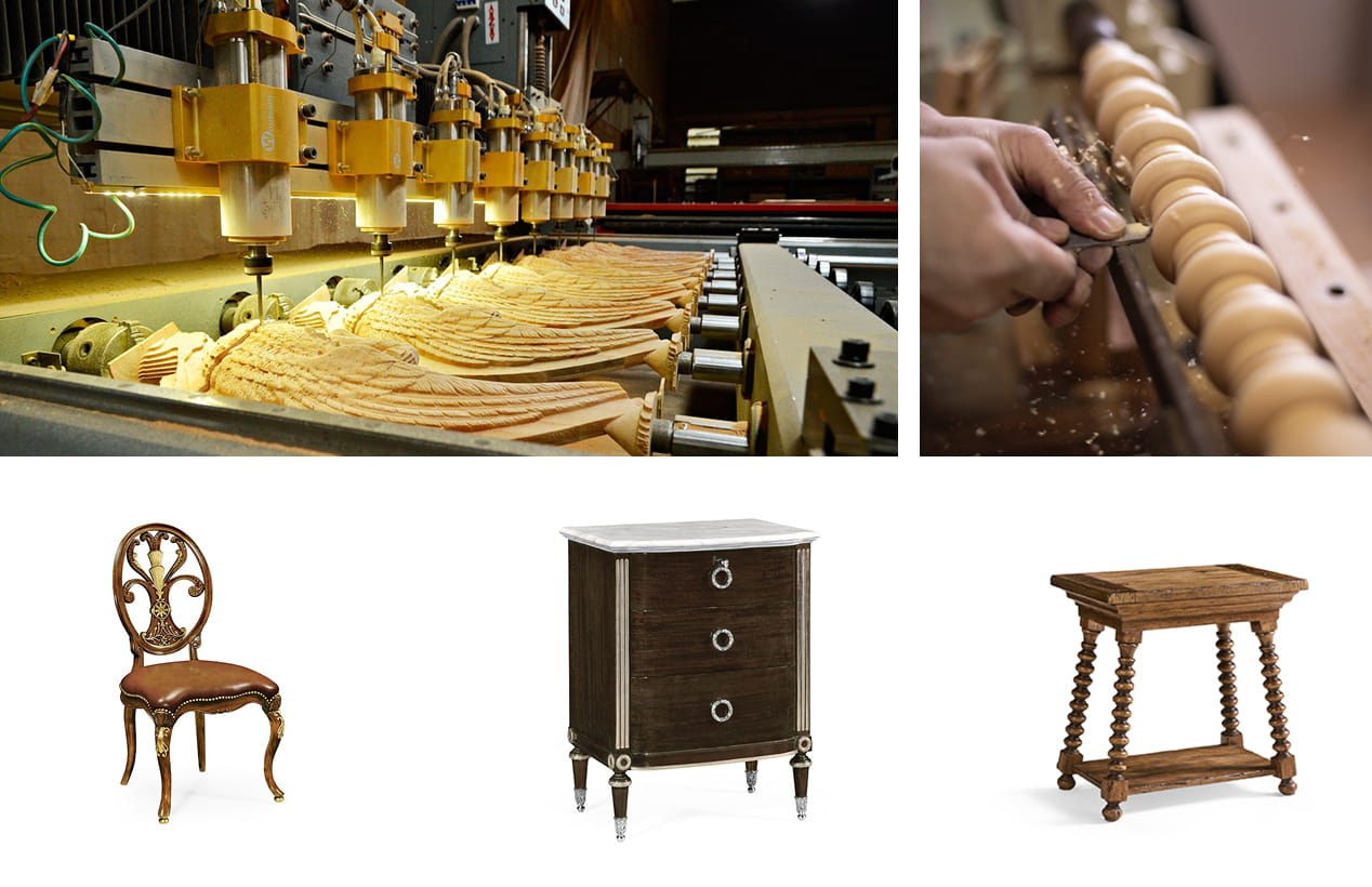 At Jonathan Charles we handle millions of pieces of timber and veneer every year. With practised eyes our carvers, sanders, veneer cutters, carpenters and quality control specialists handle wood in all its stages of production with expert eyes. When you commission any form of wooden component from us you are buying not only that piece, but the professional guarantee that can only come from experience.