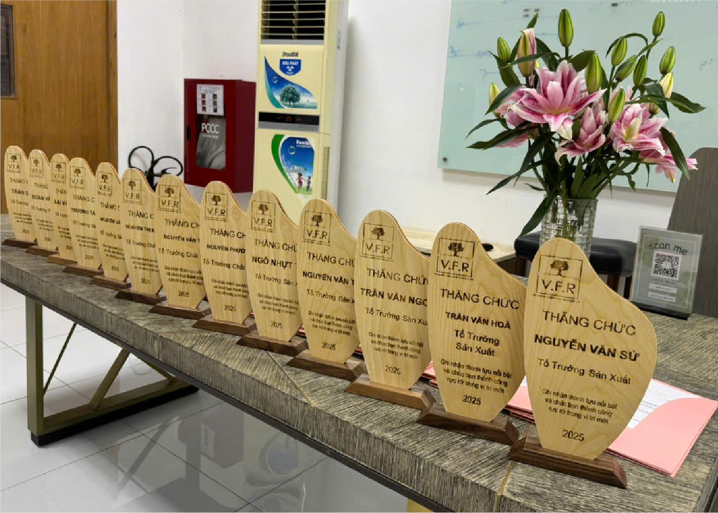 Chiều 06/08/2025, Phòng Nhân sự V.F.R tổ chức lễ thăng chức cho 13 tân quản lý –
