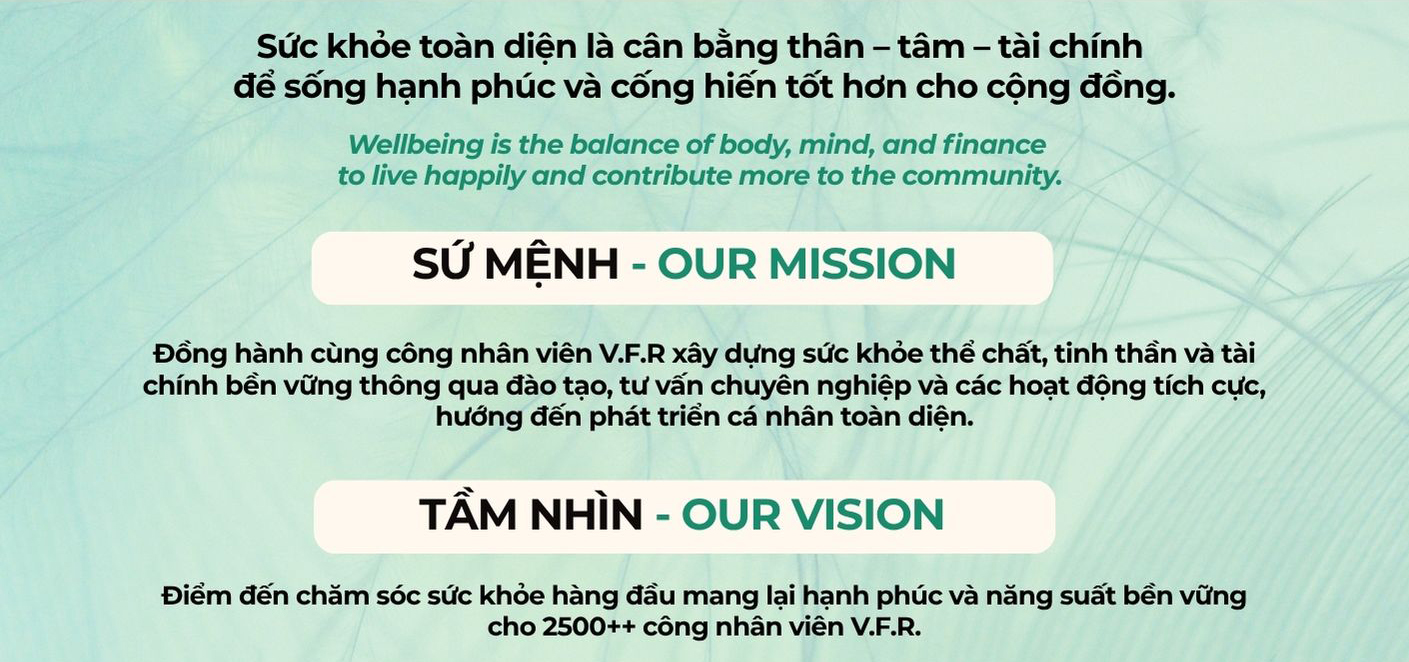 Tại V.F.R, chúng tôi tin rằng một đội ngũ khỏe mạnh là nền tảng của năng suất bền