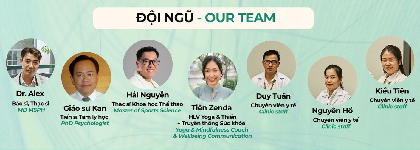 luyện viên yoga – thiền, cố vấn sức khỏe, và nhân viên y tế giàu kinh nghiệm. Mỗi thành