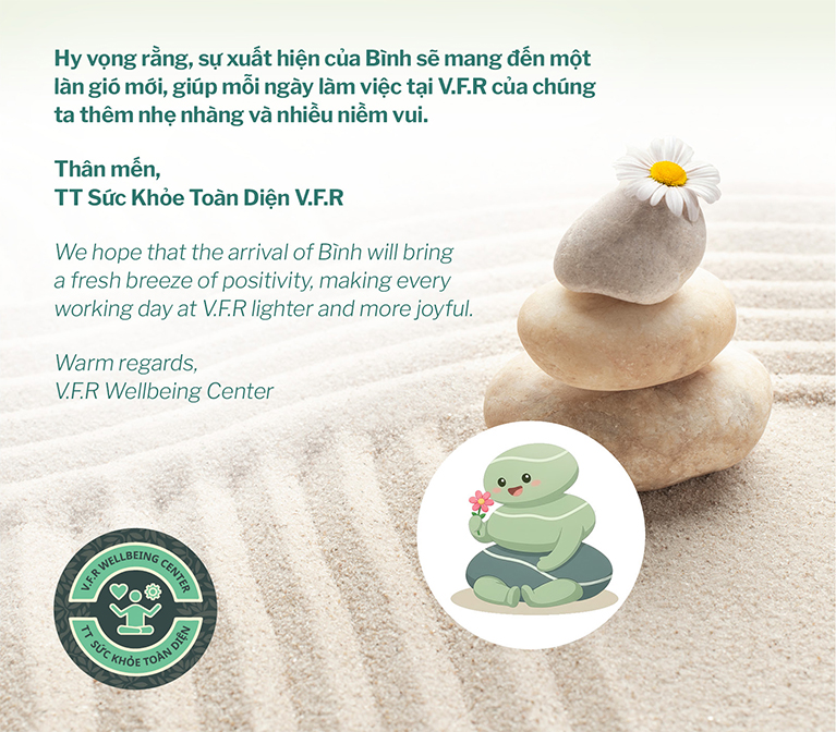 Inspired by the art of Zen Gardens, Bình features stacked pebbles that symbolize Balance in work-life and Grounding stability. The name “Bình” (Peace) embodies our core message of Inner Peace and Mindfulness (“Sáng trí - Tâm an”).